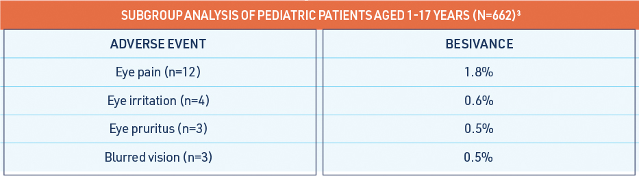 BESIVANCE has an established safety profile in pediatric patients.3
